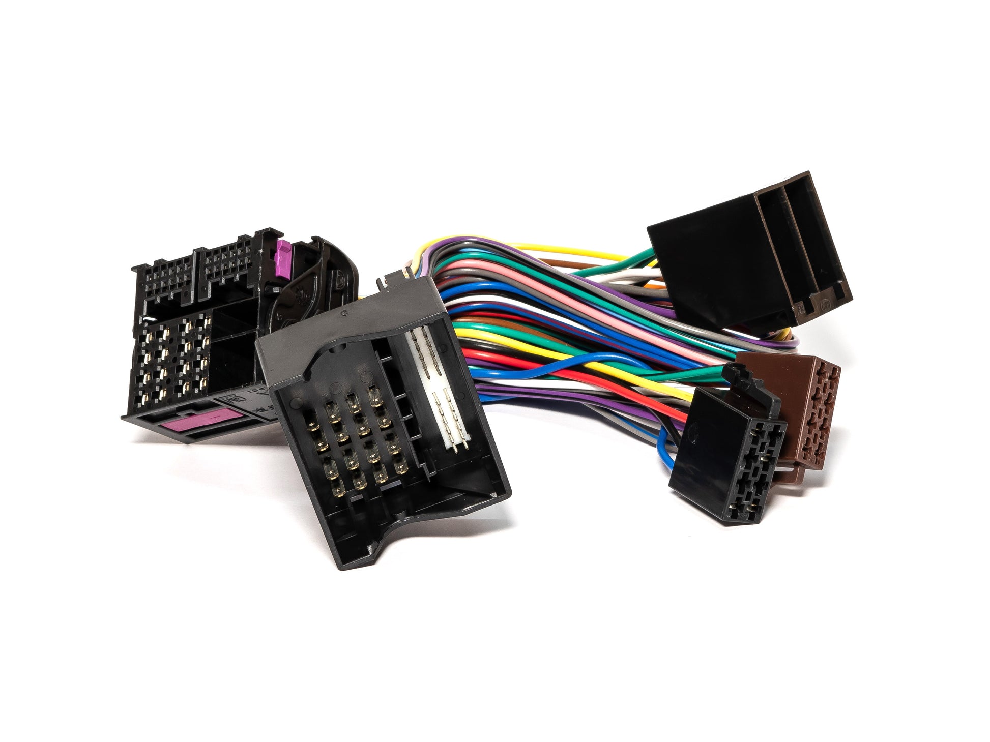 • ISO-Strom-Adapter einmal mit dem schwarzen 8-poligen ISO-Buchsen-Gehäuse verbinden.